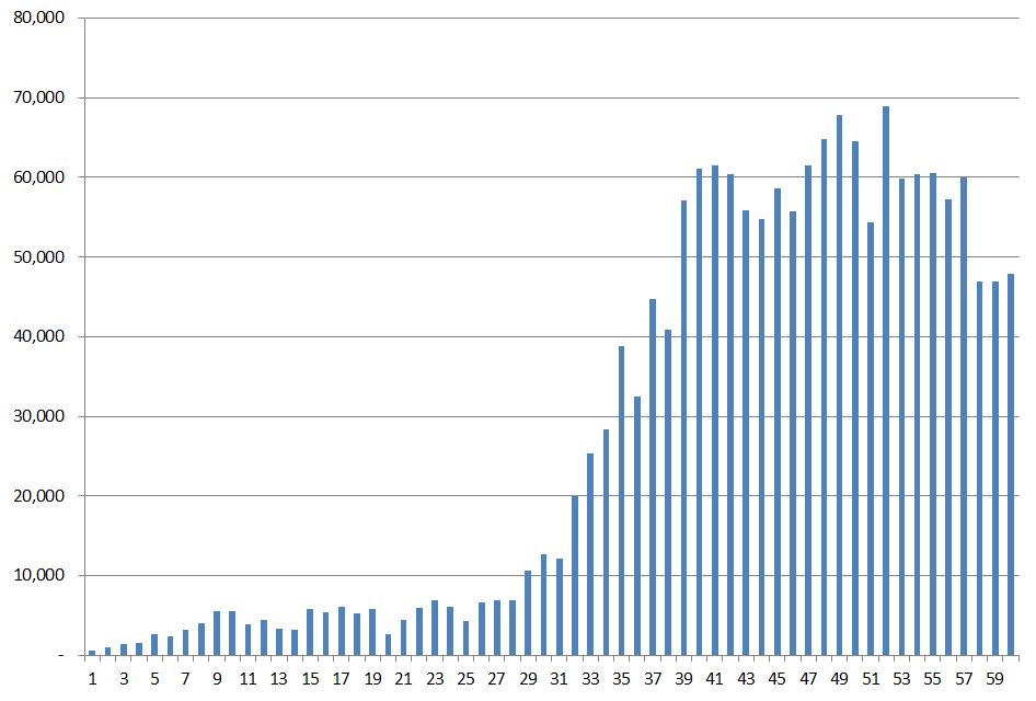 위 분석한 표를 보면 서비스 오픈후 전체활동점수는 588점에서 47,864점으로 서비스 오픈 1일차 대비 60일차에는 약 100배 상승하였습니다. 점수당 리워드는 오픈1일차 2,551점에서 오픈 60일차에는 31점으로 약 88배 감소하였습니다. 이는 초기참여자가 많은 보상을 받게 되고 있음을 결과적으로 보여주고 있습니다.