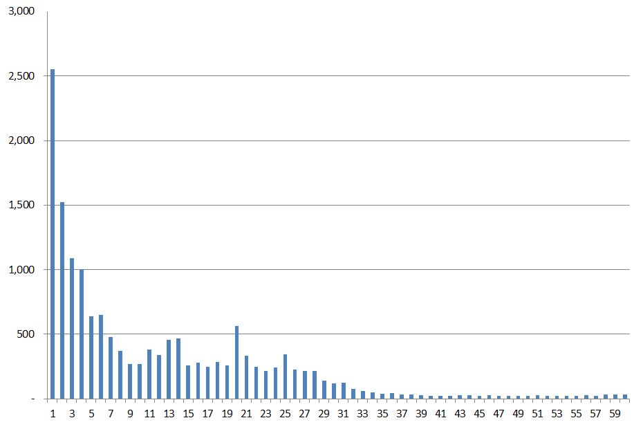 위 분석한 표를 보면 서비스 오픈후 전체활동점수는 588점에서 47,864점으로 서비스 오픈 1일차 대비 60일차에는 약 100배 상승하였습니다. 점수당 리워드는 오픈1일차 2,551점에서 오픈 60일차에는 31점으로 약 88배 감소하였습니다. 이는 초기참여자가 많은 보상을 받게 되고 있음을 결과적으로 보여주고 있습니다.