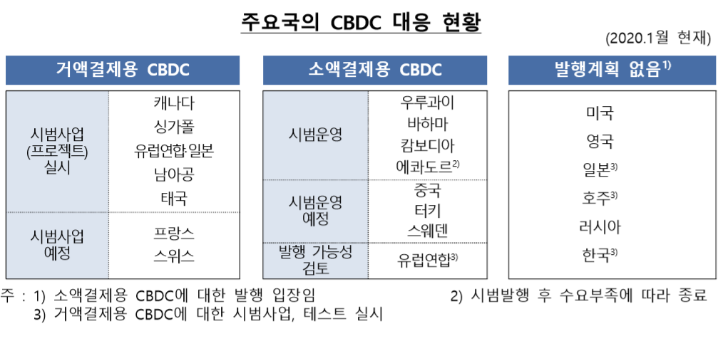 주요국의 중앙은행 디지털화폐(CBDC) 대응 현황