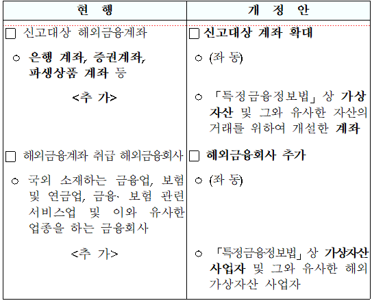 ④ 해외금융계좌 신고대상에 해외 가상자산 거래계좌 포함