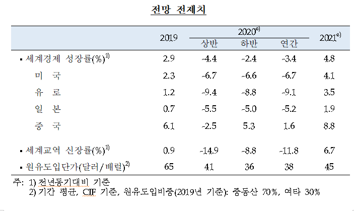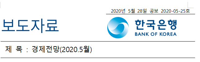 2020년 5월 28일 한국은행에서 발표된 경제전망 자료를 근거로 필요한 경우 의견을 첨부했습니다.