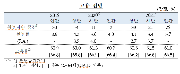 ⇒ 취업자수는 금년과 내년중 각각 3만명, 29만명 증가할 전망