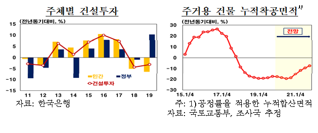 □(건설투자)민간부문 부진이 이어지면서 조정흐름이 지속될 것으로 예상
