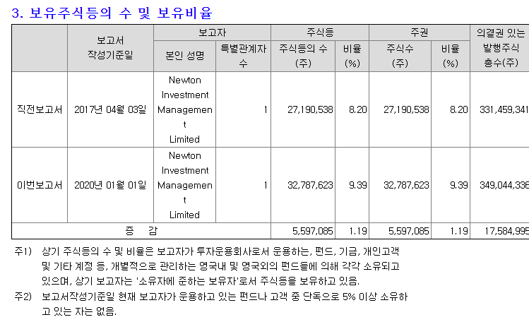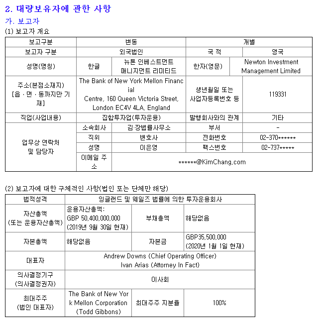외국법인이며, 영국 Newton Investment Management Limited 소유임.