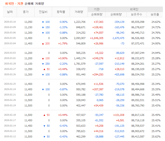 최근 1개월 외국인, 기관 순매매 거래량
