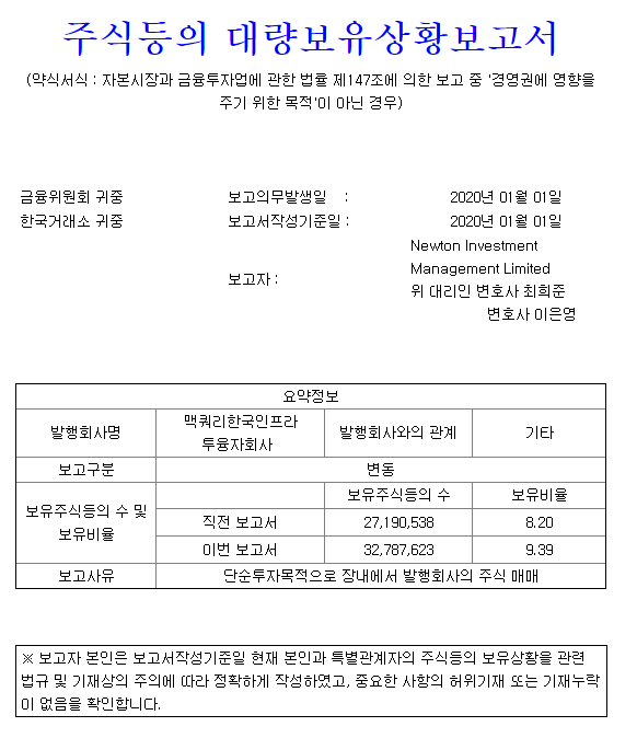 맥쿼리인프라(088980) 보유주식 및 보유비율