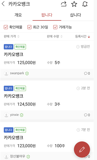 일단 한번 앱을 다운받고 어떤 거래물량이 있는지 살펴보는게 좋겠죠?