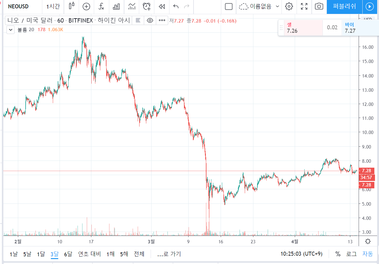 그럼, 2020년 4월 14일 기준 네오 코인 전망을 알아보자.