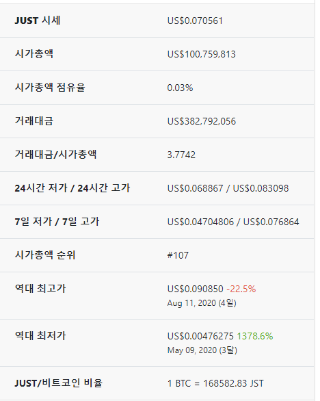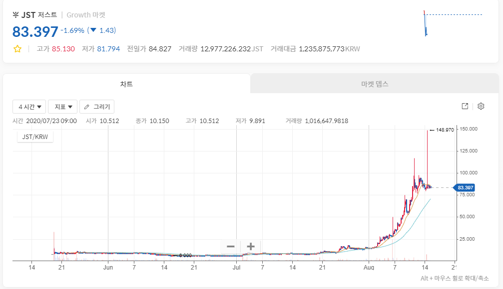 저스트JUST(JST)코인이 업비트 원화마켓에 2020년 8월 14일 상장했습니다.