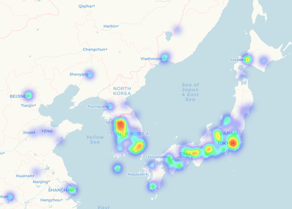 서울과 도쿄에 많군요..일본이 한국보다는 결제 가능한곳이 많은것 같습니다.