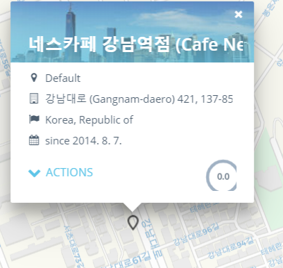 물방울 표시를 클릭하면, 상점의 주소와 정보들이 나오는데요..