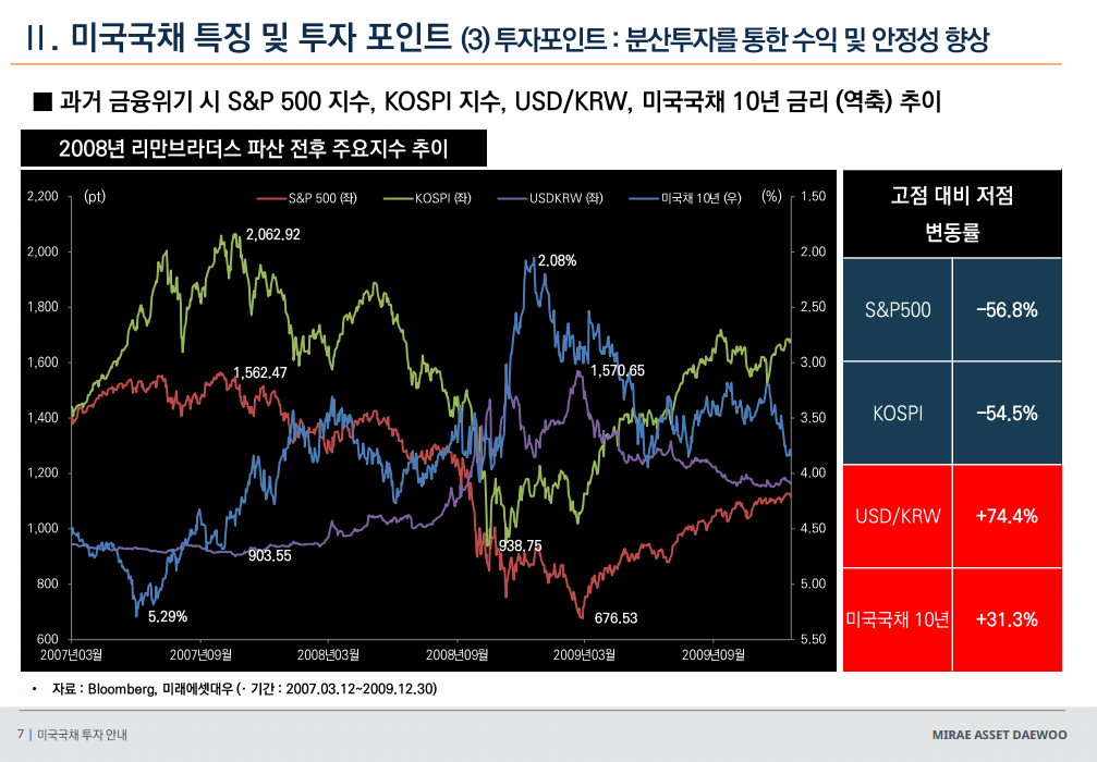 미국채 시장동향정보[2020년 3월 10일 기준, 출처 : 미래에셋대우]