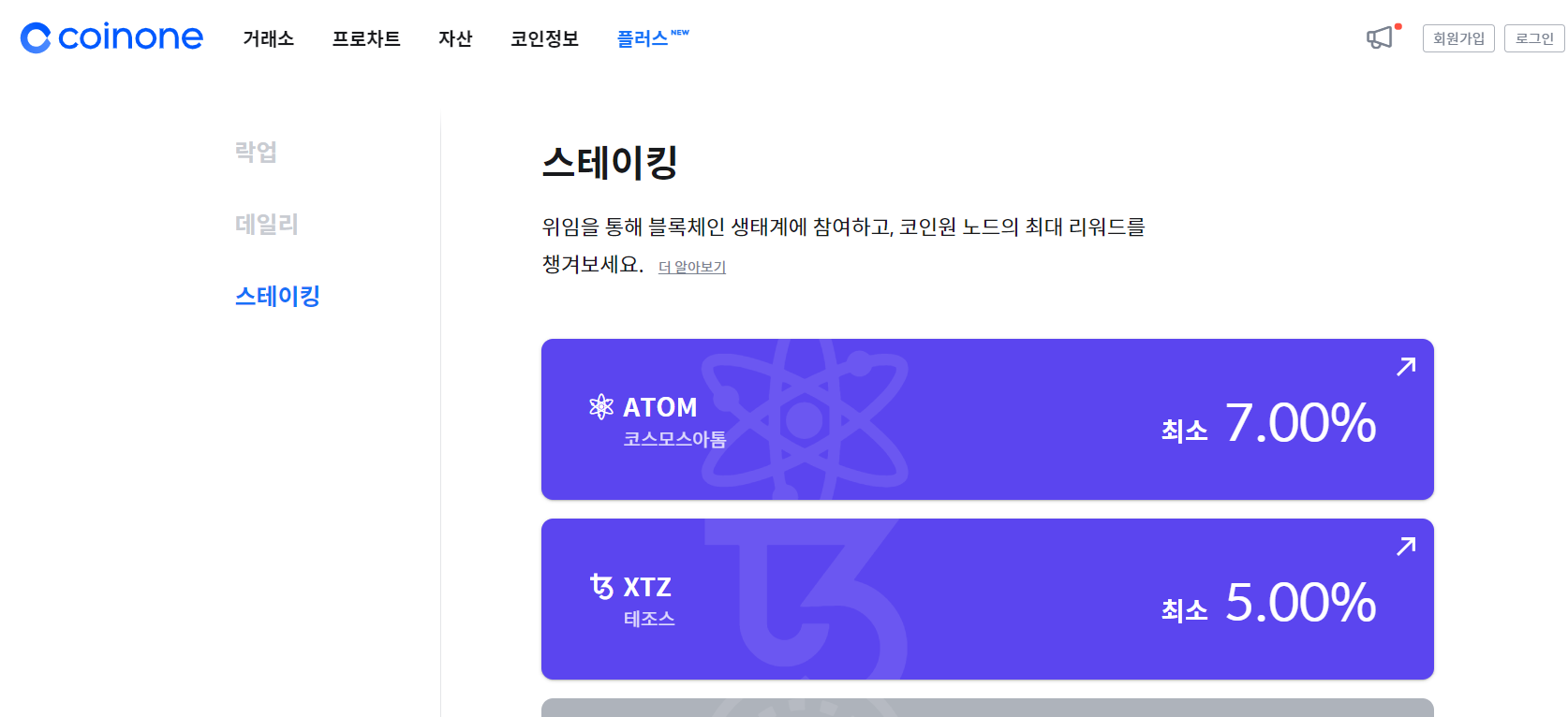 코인원 거래소에서도 아톰 스테이킹이 가능합니다.