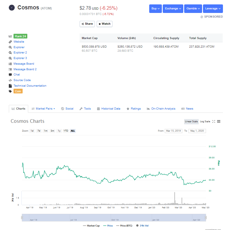 2020년 5월 1일 기준 시총 24위인 코스모스(ATOM) 스테이킹 방법에 대해서 간략히 알려드립니다.