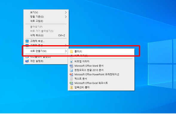 윈도우 바탕화면에서 마우스 우클릭, 새로만들기, 폴더생성 - 이름을 Web으로 생성