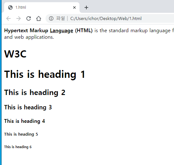 구글에서 html h1 tag 검색해보세요! (네이버, 다음 쓰지말고 구글쓰세요!!)