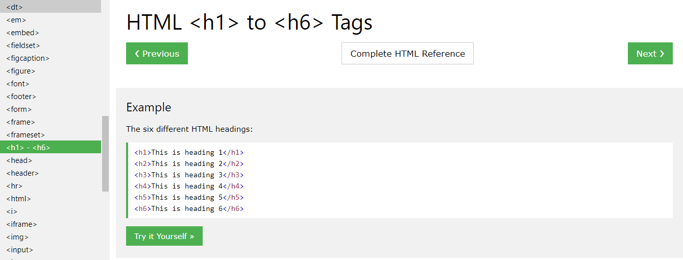 큰 제목태그. 정도로 해석할 수 있습니다. 글의 가장 큰 제목, 그 다음 제목, 소제목..등등 순으로 6개까지 나열이 가능하다는뜻이죠~