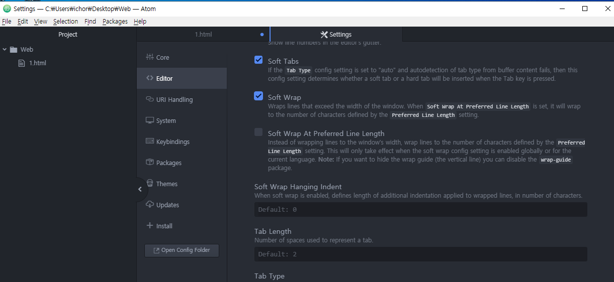 [참고] 아톰 에디터에 저처럼 줄바꿈이 안될 수 있어요~ 기본셋팅값이 줄바꿈이 안되어 있는듯합니다.