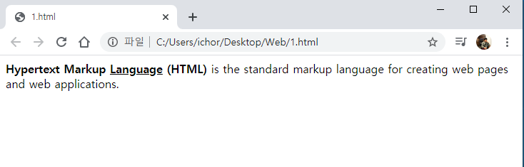 전, HTML을 강조하고 싶어요!! 그래서 그 문구 앞뒤에 요렇게 태그를 달아줍니다.