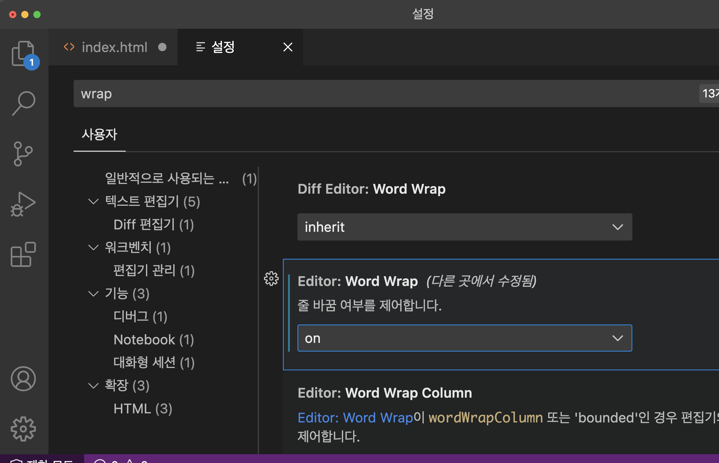 비주얼스튜디오 코드에서 줄바꿈은 아래와 같음