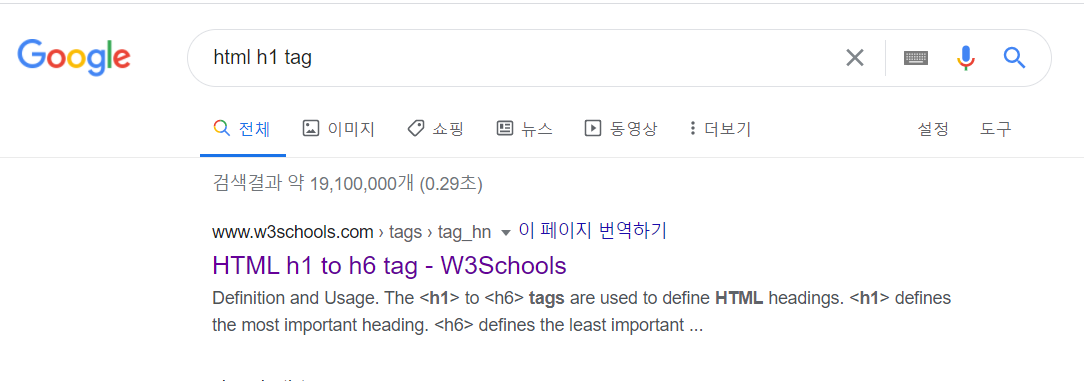 자. 그럼 H1태그가 뭔지 한번 검색해서 알아봅시다!