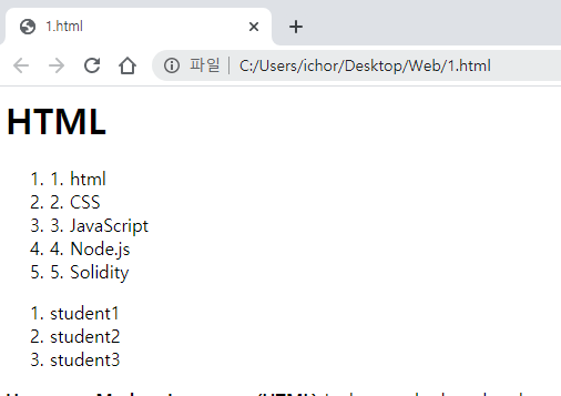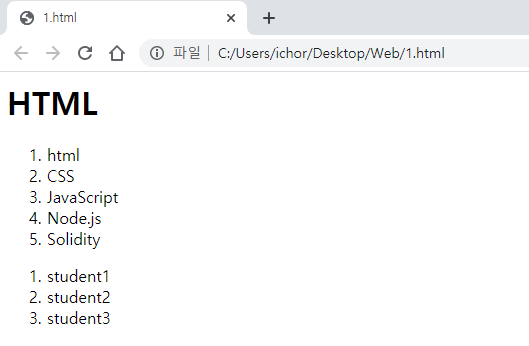 <ol>태그를 사용하면 순서(번호)를 정해서 리스트한다는 뜻이고