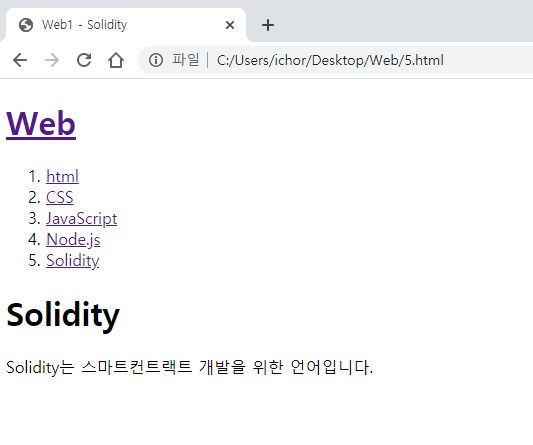 각 항목마다 1.html, 2. CSS 3. Javascript, 4. Node.js 5. Solidity 를 클릭하면 연결되도록 해볼께요!!!