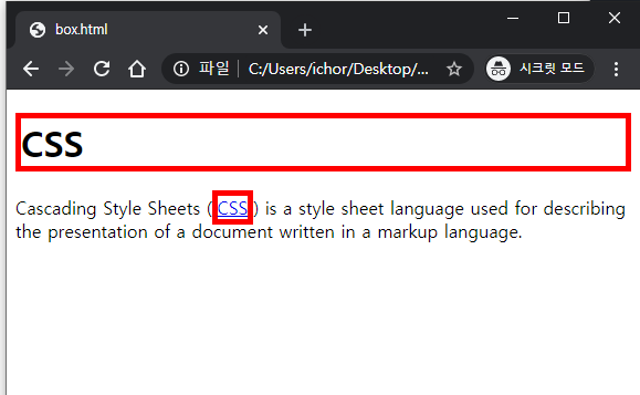 이렇게 h태그와 a태그에 테두리를 설정해봤습니다.