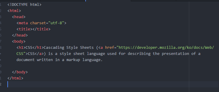 그리고 적당한 웹페이지를 CSS에 a href태그로 링크를 겁니다. 아래와 같이요
