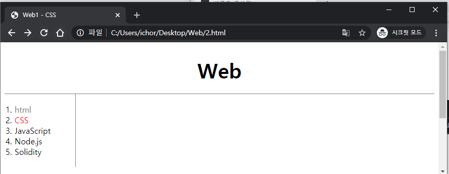 이번에는 html, css 목차의 오른쪽에 가로줄을 그어보겠습니다.