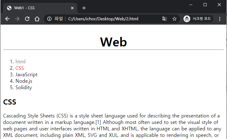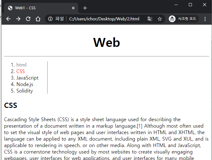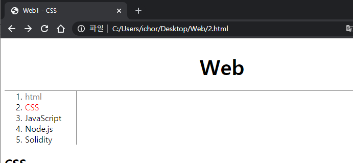 결과를 보니 줄긴했는데, 1.html이 너무 위에 붙어있네요.