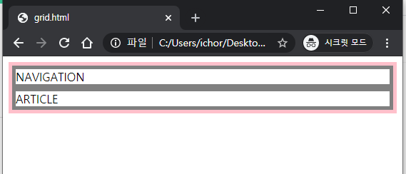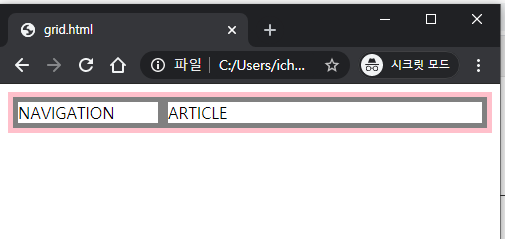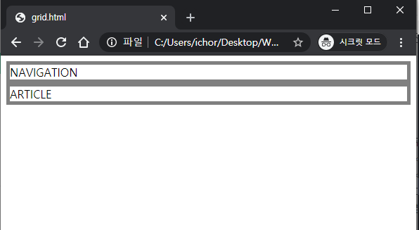 위와 같이 <div>태그로 NAVIGATION, ARTICLE를 작성합니다.