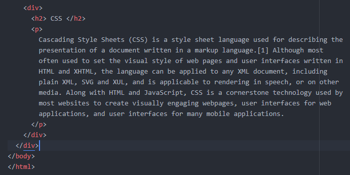 두번째로 본문을 <div></div>태그로 묶습니다. 자식태그입니다.