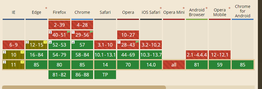아래 사이트는 우리가 사용하는 최신 기술이 모든 브라우저에 적용이 되는지 살펴보는 홈페이지입니다.