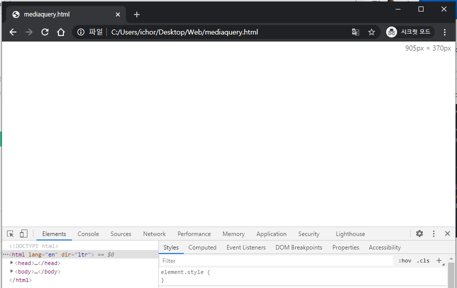 mediaquery.html 파일을 만들고 아래와 같이 코딩해줍니다.