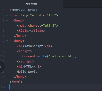 아래와 같이 ex1.html 문서를 열고, 본문에 스크립트를 한번 작성해볼께요