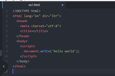 아래와 같이 ex1.html 문서를 열고, 본문에 스크립트를 한번 작성해볼께요