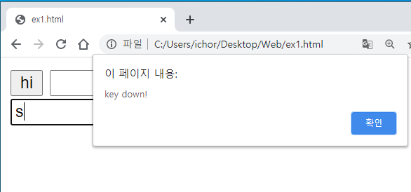 네 새로운 입력창이 생겼고, 여기에 키보드로 키를 하나 누르면 누를때마다 이렇게 알람이 뜹니다.