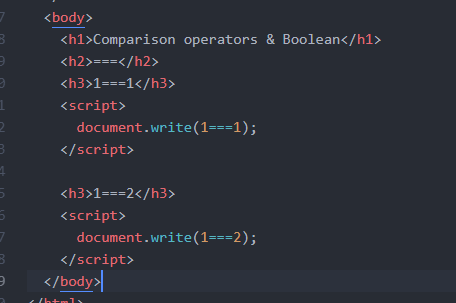 '==='와 동일하게 비교연산자 '<,>'의 결과로 boolean인 true, false를 알려주는걸 배우게되었습니다.