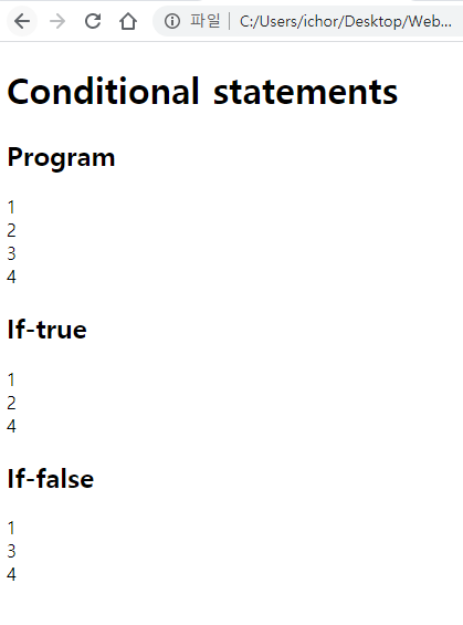 네, 이번시간에는 자바스크립트 조건문에 대해서 배웠습니다.