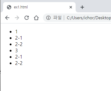 즉, two라는 함수를 선언했고 two()함수의 내용은 2-1,2-2가 출력되는 태그의 내용이 됩니다.