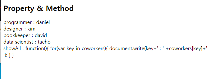 document.write("programmer: " + coworkers.programmer +"<br>");