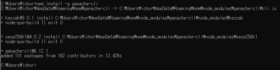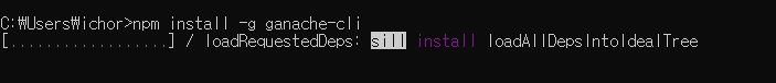 npm install -g ganache-cli 명령어로 ganiche를 설치합니다.
