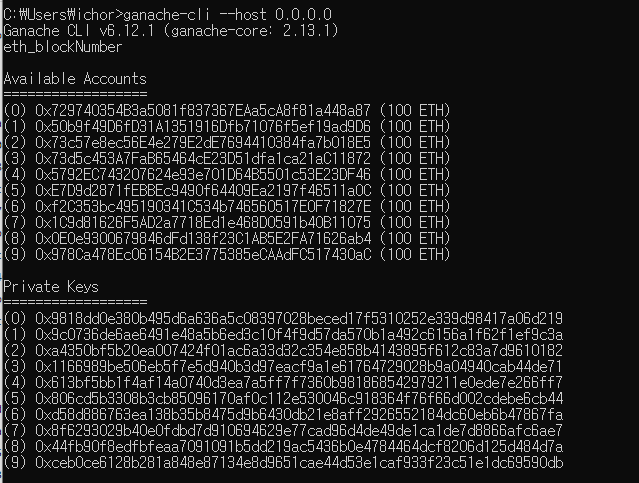 아래와 같이 ganache-cli --host 0.0.0.0 을 실행합니다.