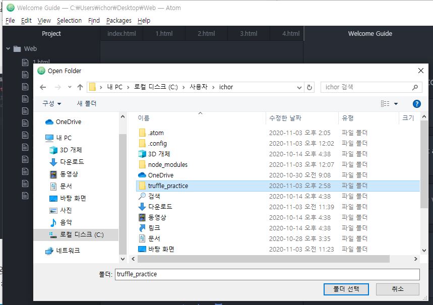 ATOM에디터에서 해당 폴더를 오픈합니다.