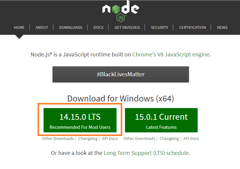 1) 아래 Node.js 홈페이지 접속하여 Node.js 파일을 다운로드 받아 설치합니다.