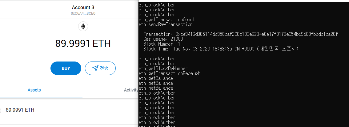 메타마스크는 왼쪽처럼, 명령프롬포트는 오른쪽처럼 표시됩니다.