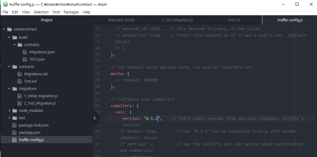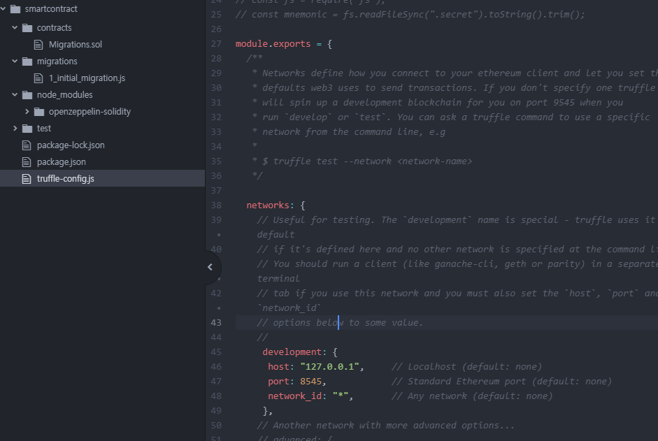 - contracts : 실제 우리가 solidity언어로 스마트컨트랙트를 작성하는 공간입니다.