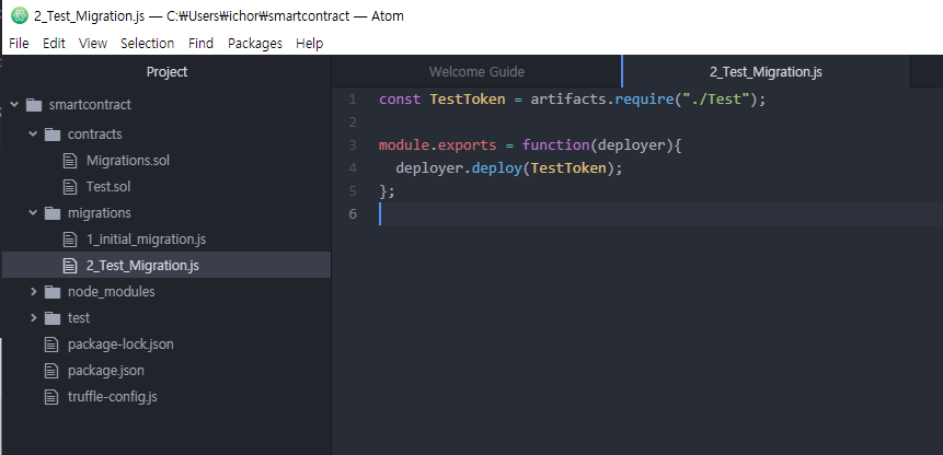 위에 작성한 Test.sol 코드를 블록체인에 올리기 위해서 해당 파일을 작성하는겁니다.