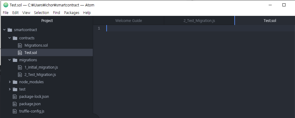 이제 본격적인 준비작업은 끝났으니, 간단한 스마트컨트랙트를 직접작성해봅시다.